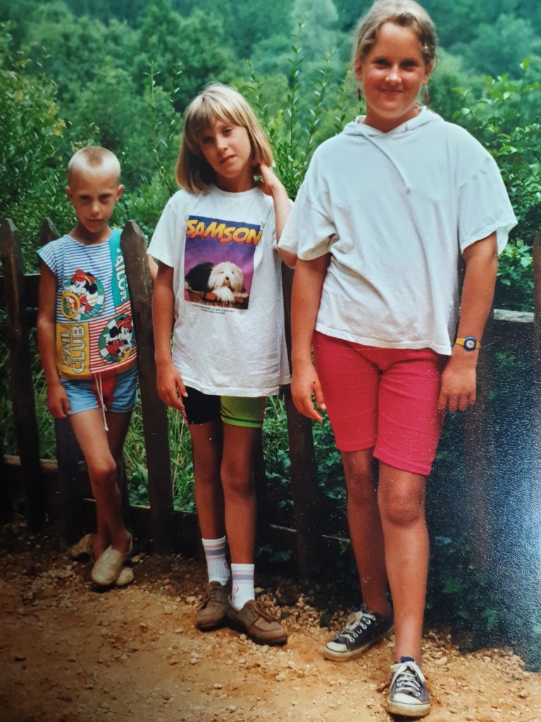 Als ik die vragen stel aan mama, antwoordt ze steeds hetzelfde. Dan vertelt ze over hoe Griet haar poppen in mijn wieg gooide. Ik weet niet of ze nog herinneringen heeft aan onze kindertijd. Toen we samen naar een foto van Griet, Bram en mij keken na de grote opkuis in september 2019, herkende ze ons niet.