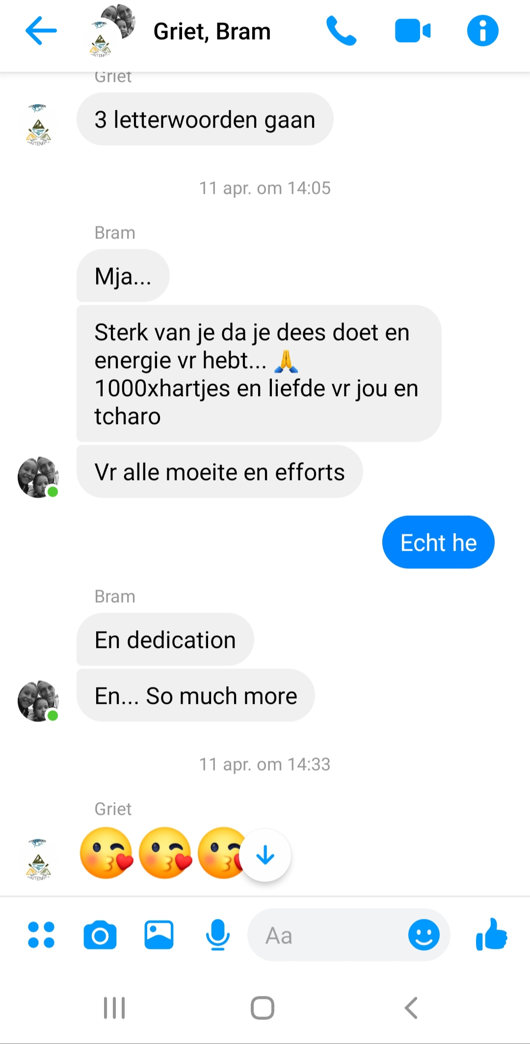 Hotel Griet komt bijna tot een eind. Tonnen respect voor al wie thuis een zorgbehoevende heeft. Alle respect voor mijn grote zus die de verantwoordelijkheid op zich heeft genomen. Mijn hart brak vandaag toen ze me vertelde dat ze soms met een schuldgevoel zit; “Heb ik wel genoeg tijd aan mama gegeven, heb ik wel genoeg gedaan, heb ik wel genoeg gegeven, heb ik wel…”. Griet, alles en meer. Veel meer. Bram en ik zijn je zo dankbaar. We hebben ons best gedaan je te ondersteunen deze periode. Via sms, telefoon, videocall. Zonder twijfel zal je vol liefde op deze tijd terugkijken. Hoe moeilijk het ook was. Ik ben ervan overtuigd dat de goeie momenten zullen overheersen. Dat je fier kan zijn op jezelf. Jij hebt gezorgd voor je mama, zoals zij ooit gezorgd heeft voor jou.