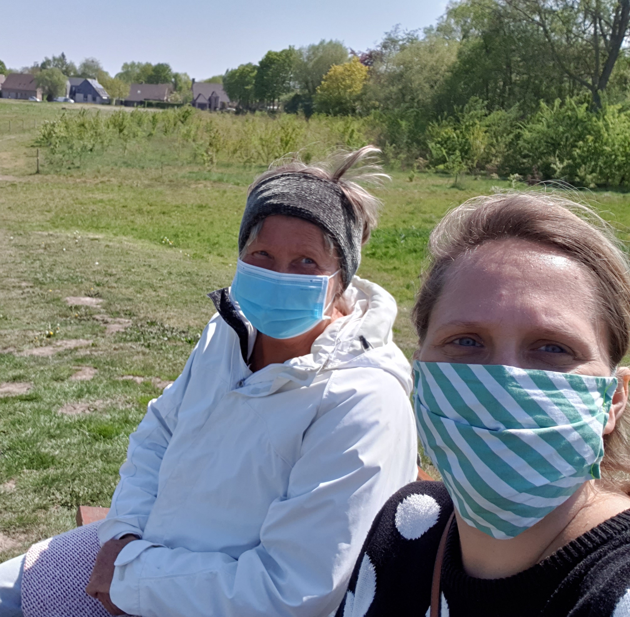 Vorig weekend werd duidelijk dat Griet aan het jongleren was thuis en nood had aan rust. Het minste wat ik kon doen, was even gaan wandelen met mama. Het plan was dat we op afstand van elkaar zouden wandelen, maar niet alleen verlangde ik haar aan te raken, ook is haar evenwicht niet goed meer. Ze keek heel strak naar de grond terwijl ze stapte, gefocust om niet te vallen. Elk bankje namen we aan om van de omgeving te genieten. En van elkaar. Ik ga geen vragen uit de weg met mama. Ik vind het belangrijk te weten wat in haar hoofd omgaat, wat ze wel/niet wil. Hoe ze zich voelt.